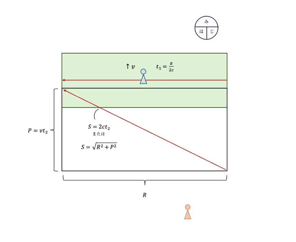 この時 $t_1=\cfrac{R}{2c}$ であることより