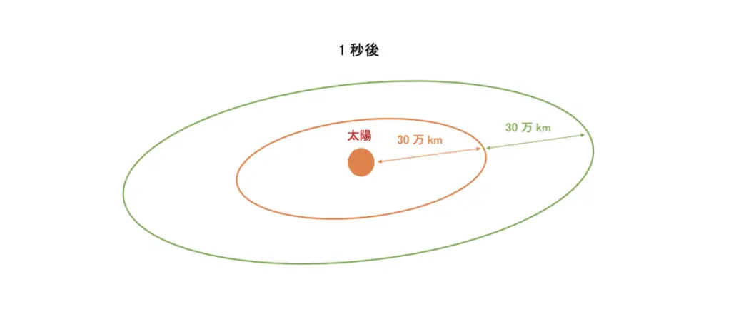 1秒後には太陽の約30万km先まで照らされる。